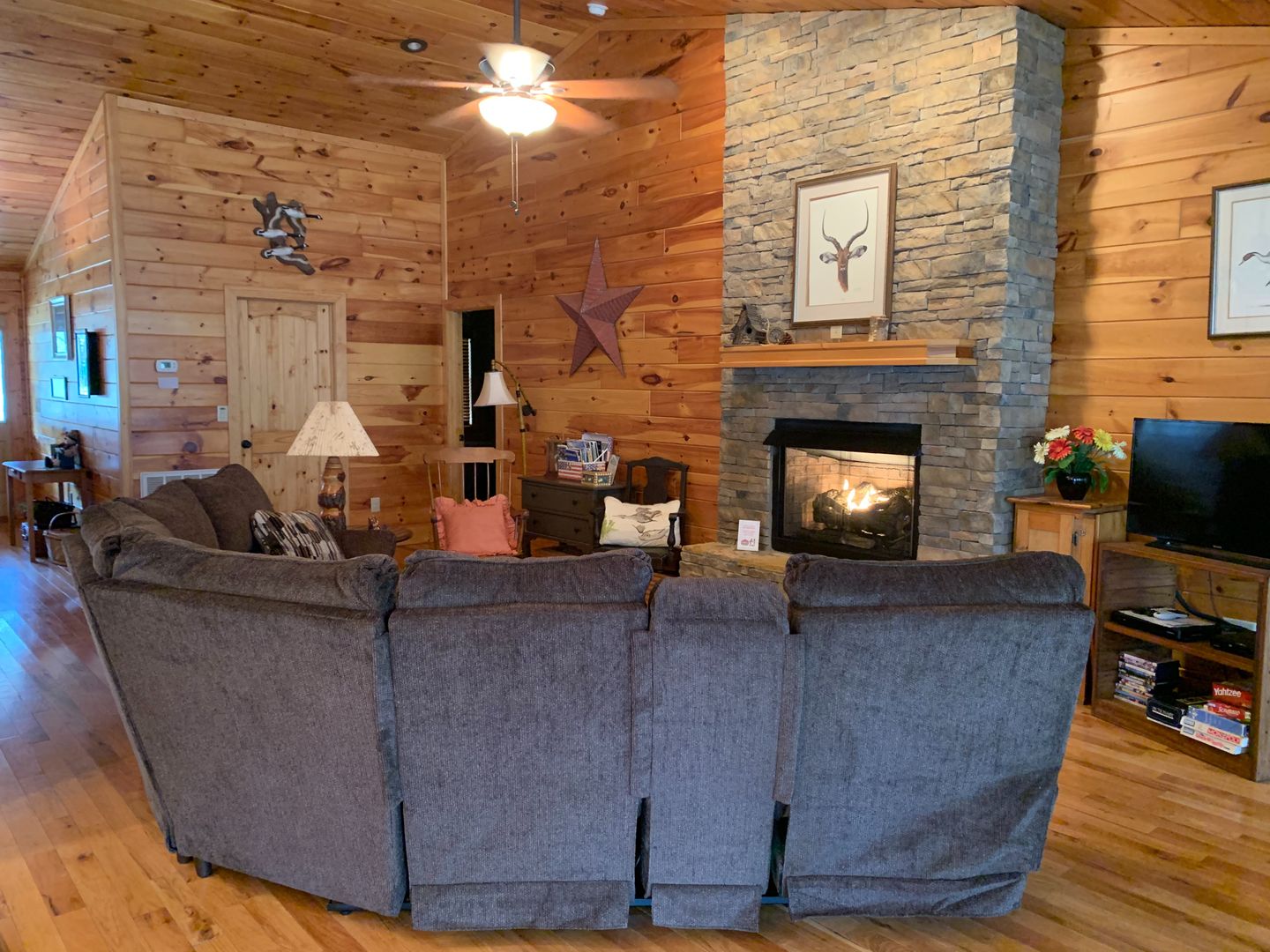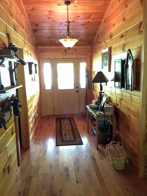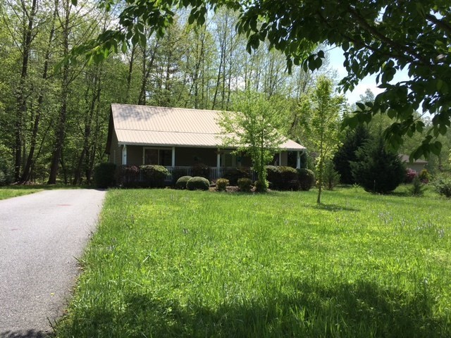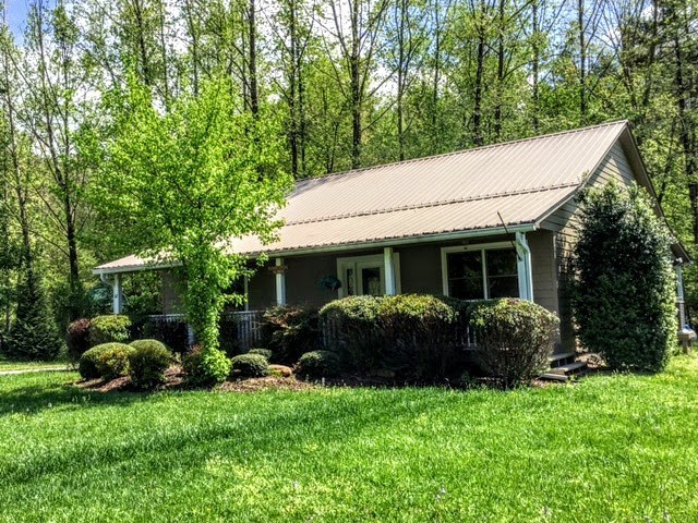 NOISY CREEKFRONT three bedroom two bath. Stunning and one of a kind property are the first words that come to mind when standing on this property. Where else can you get mountain views, rushing trout stream frontage and a perfect cabin in one place? Peaceful entry way off of covered front porch leads you into this fantastic 3 bedroom, 2 bath cabin with all wood interior. The great room is super spacious with a stone fireplace and room for a game table, fully stocked roomy kitchen plus two french doors leading onto a private covered porch looking out over your park complete with fire pit and hammock. Private master suite with walk in closet and double vanities.